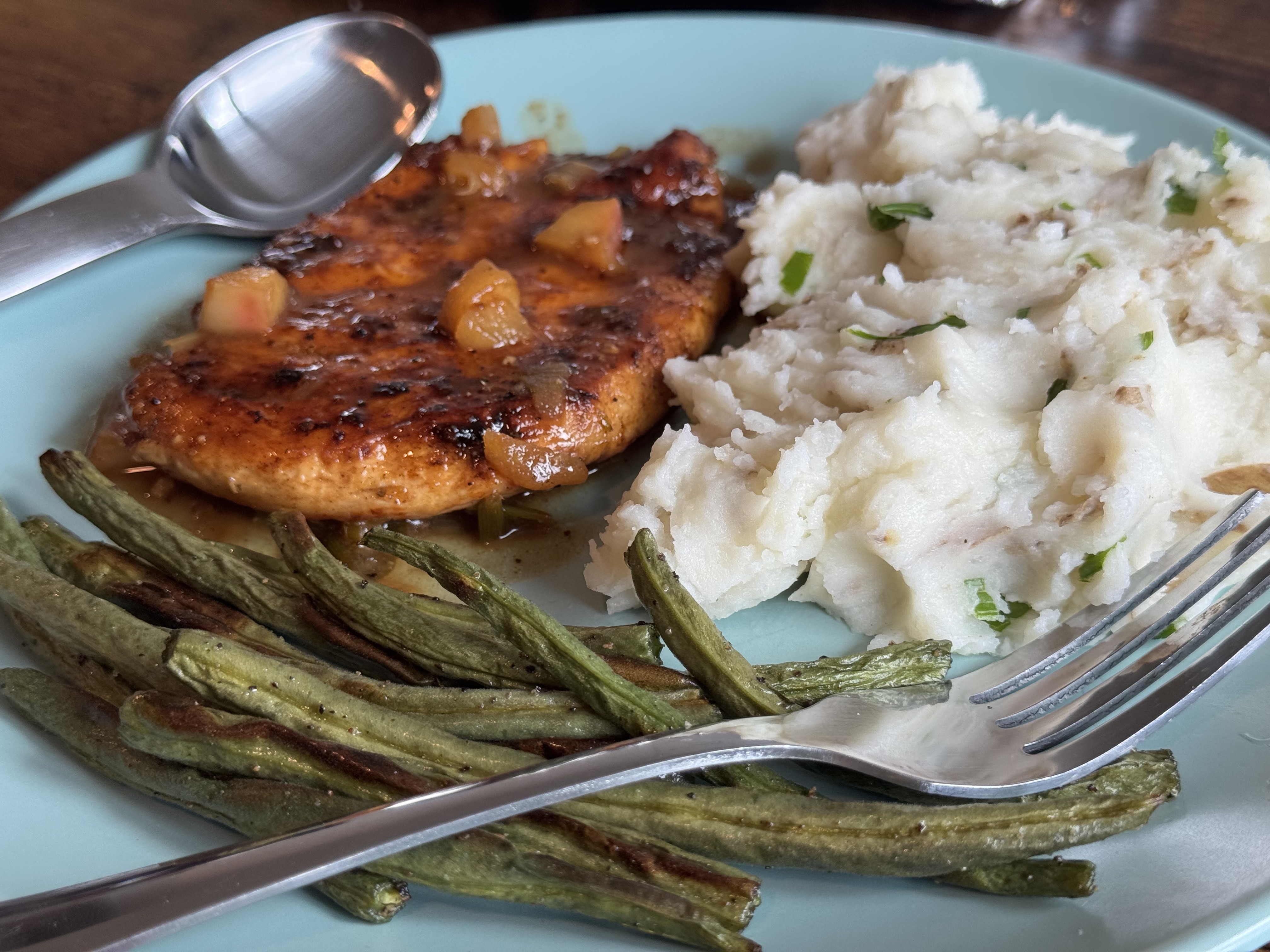 - 4x servings Brown Sugar Bourbon Chicken + Green Beans + Mashed Potatoes